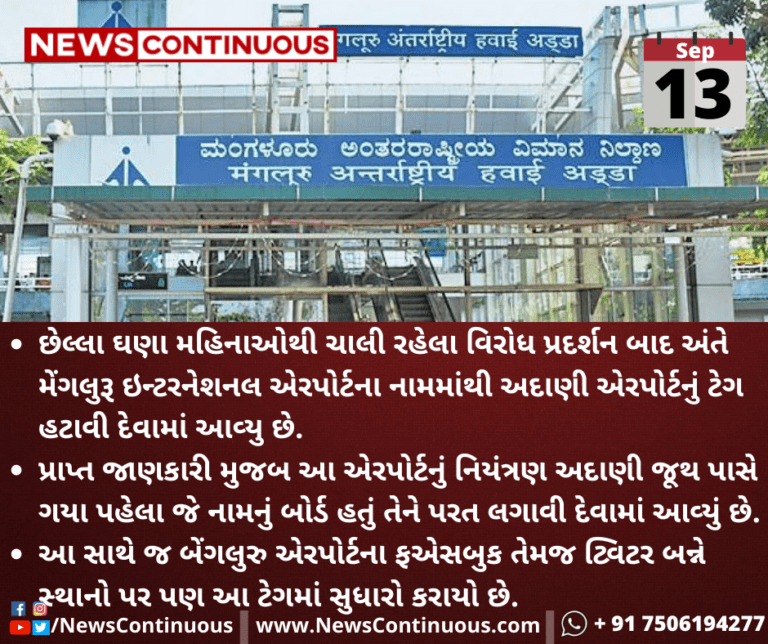 છેલ્લા ઘણા મહિનાઓથી ચાલી રહેલા વિરોધ પ્રદર્શન બાદ અંતે મેંગલુરૂ ઇન્ટરનેશનલ એરપોર્ટના નામમાંથી અદાણી એરપોર્ટનું ટેગ હટાવી દેવામાં આવ્યુ છે.