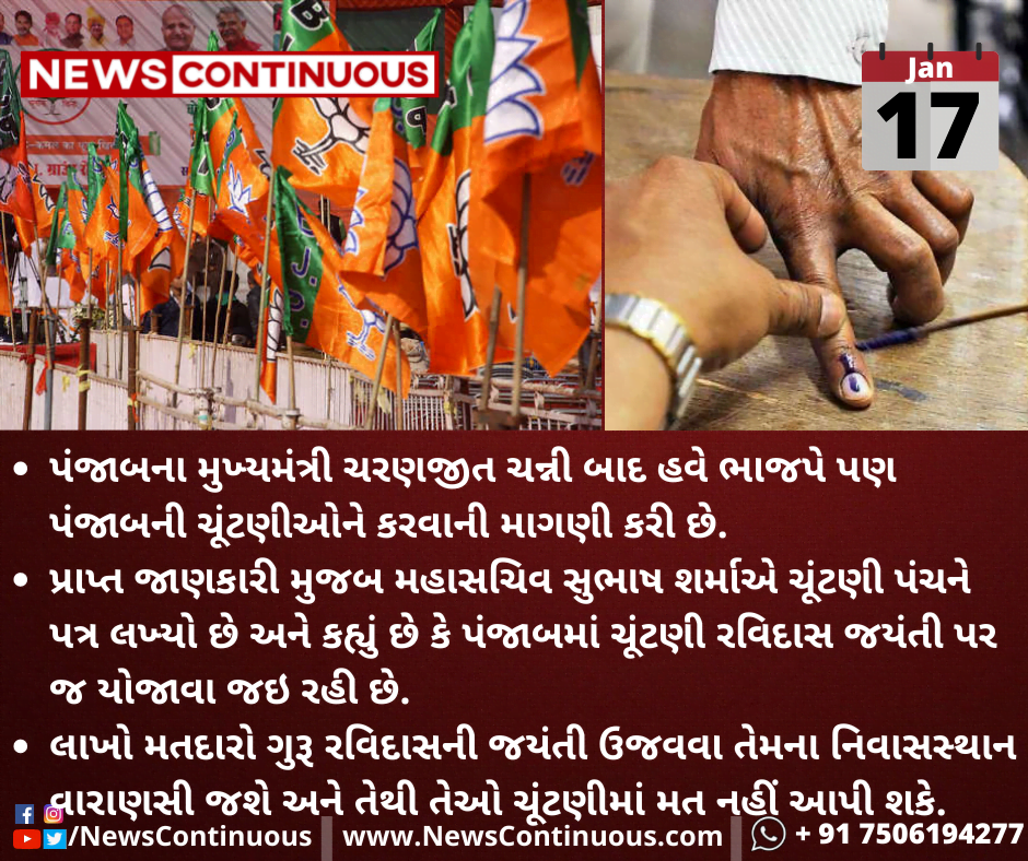પંજાબના મુખ્યમંત્રી ચરણજીત ચન્ની બાદ હવે ભાજપે પણ પંજાબની ચૂંટણીઓને કરવાની માગણી કરી છે.