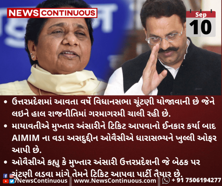 માયાવતીએ મુખ્તાર અંસારીને ટિકિટ આપવાનો ઈનકાર કર્યા બાદ AIMIM ના વડા અસદુદ્દીન ઓવૈસીએ ધારાસભ્યને ખુલ્લી ઓફર આપી છે.