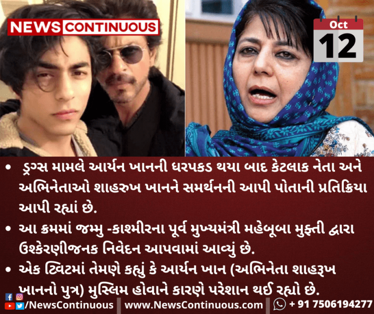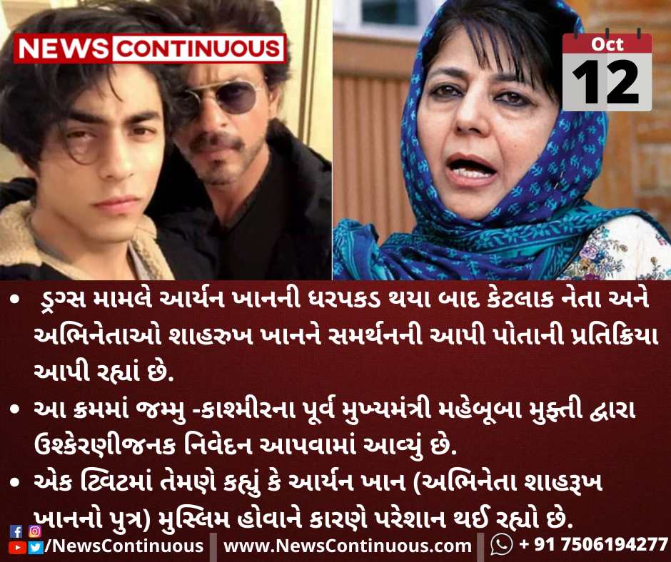 ડ્રગ્સ મામલે આર્યન ખાનની ધરપકડ થયા બાદ કેટલાક નેતા અને અભિનેતાઓ શાહરુખ ખાનને સમર્થનની આપી પોતાની પ્રતિક્રિયા આપી રહ્યાં છે.