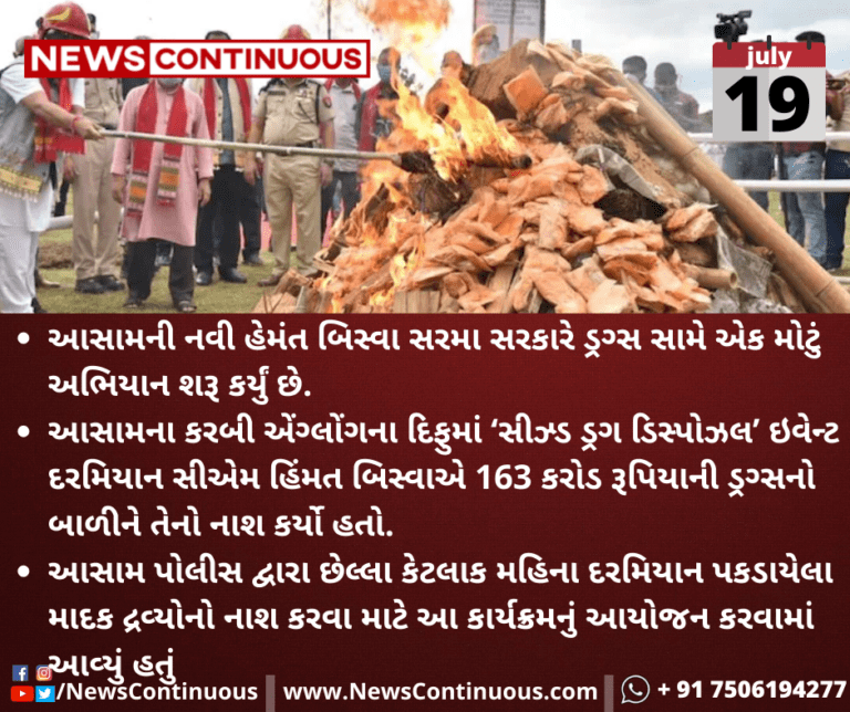 ઉલ્લેખનીય છે કે આસામની નવી સરકારે 10 મેના રોજ સત્તા સંભાળી ત્યારથી રાજ્યના વિવિધ ભાગોમાંથી ડ્રગની દાણચોરીના 874 કેસ નોંધાયા છે, 1493 ડ્રગ ડીલરોની ધરપકડ કરવામાં આવી છે અને રૂ. 163 કરોડની દવાઓ જપ્ત કરવામાં આવી છે.