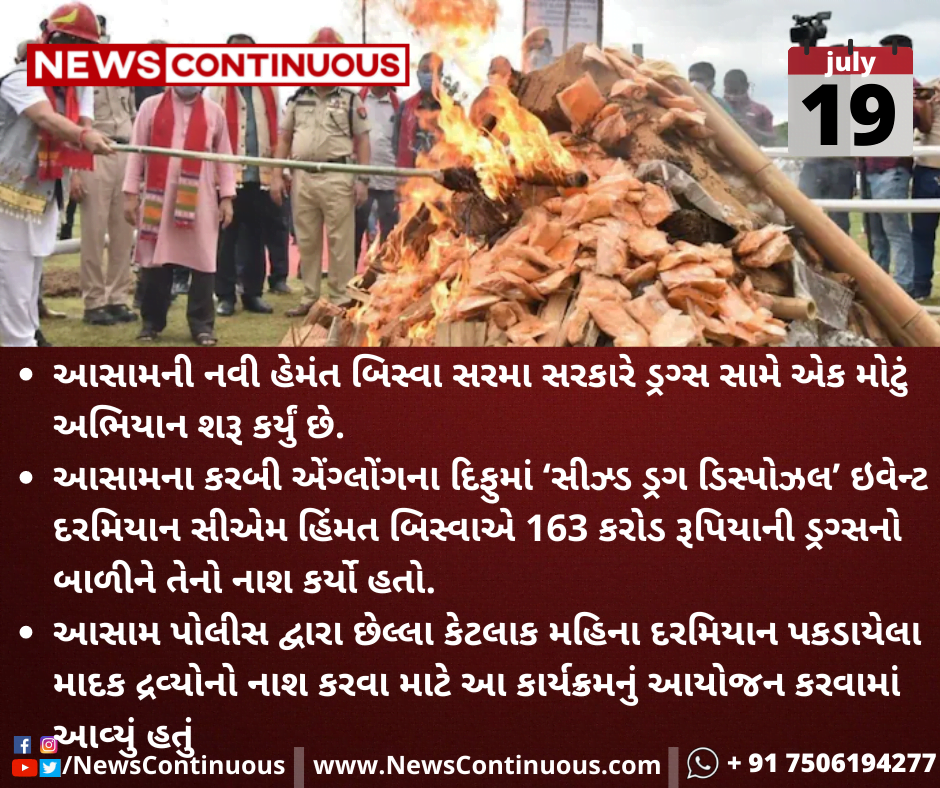 આસામની નવી હેમંત બિસ્વા સરમા સરકારે ડ્રગ્સ સામે એક મોટું અભિયાન શરૂ કર્યું છે.