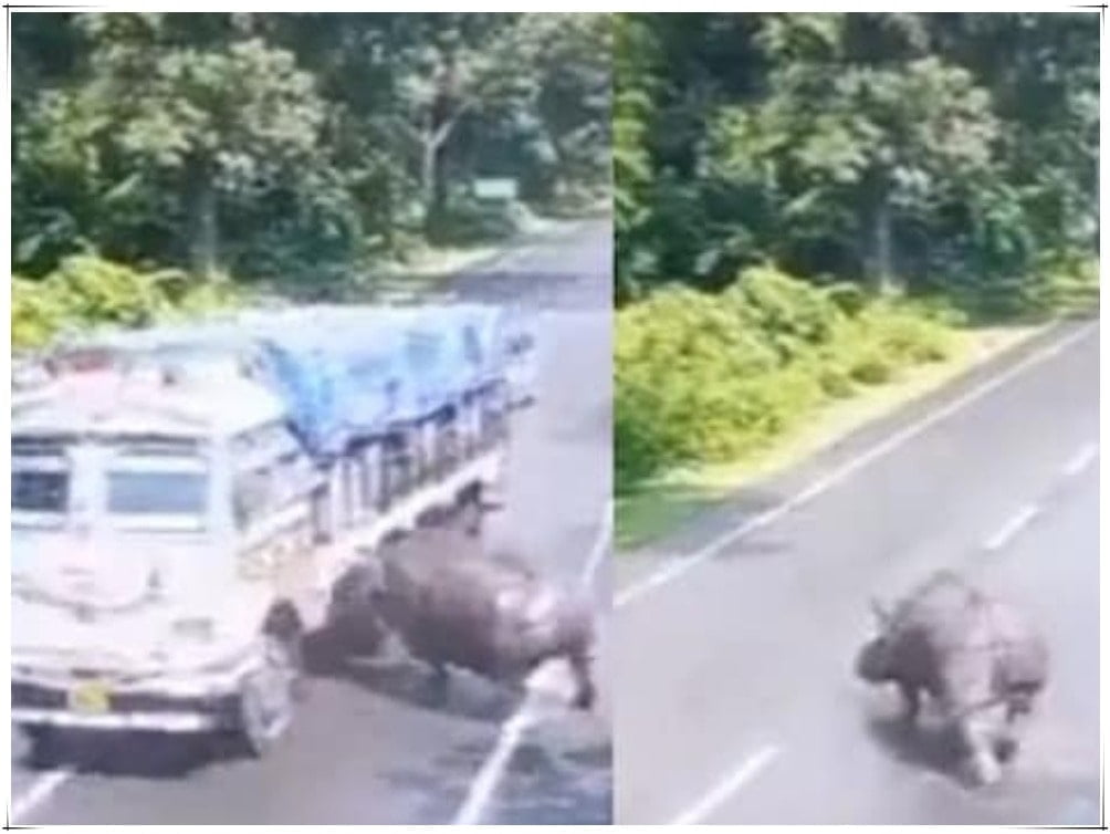 હાઈવે પર અચાનક આવ્યા બાદ રાઈનો ટ્રક સાથે અથડાઈ ગયો. જો કે, ગેંડા ટ્રકની ટક્કરથી નાસી છૂટ્યો હતો અને પાછો જંગલની અંદર ગયો હતો. ઘટના બાદ ડ્રાઈવર પર ભારે દંડ ફટકારવામાં આવ્યો છે.