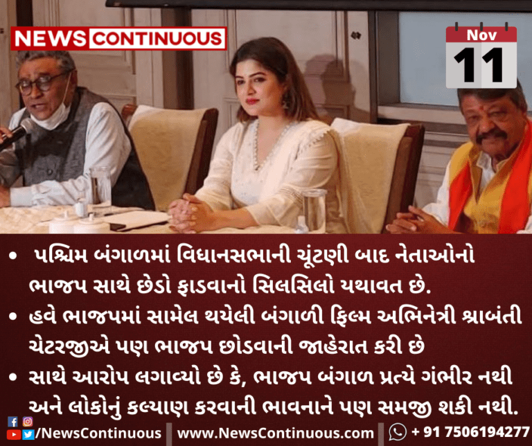 હવે ભાજપમાં સામેલ થયેલી બંગાળી ફિલ્મ અભિનેત્રી શ્રાબંતી ચેટરજીએ પણ ભાજપ છોડવાની જાહેરાત કરી છે