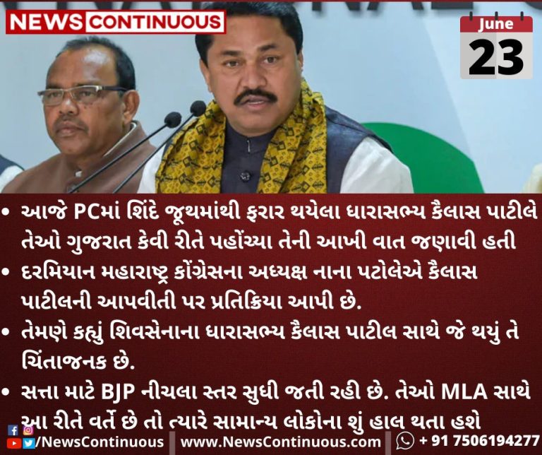 દરમિયાન મહારાષ્ટ્ર કોંગ્રેસના(Maharashtra Congress) અધ્યક્ષ નાના પટોલેએ(Nana Patole) કૈલાસ પાટીલની આપવીતી પર પ્રતિક્રિયા આપી છે.