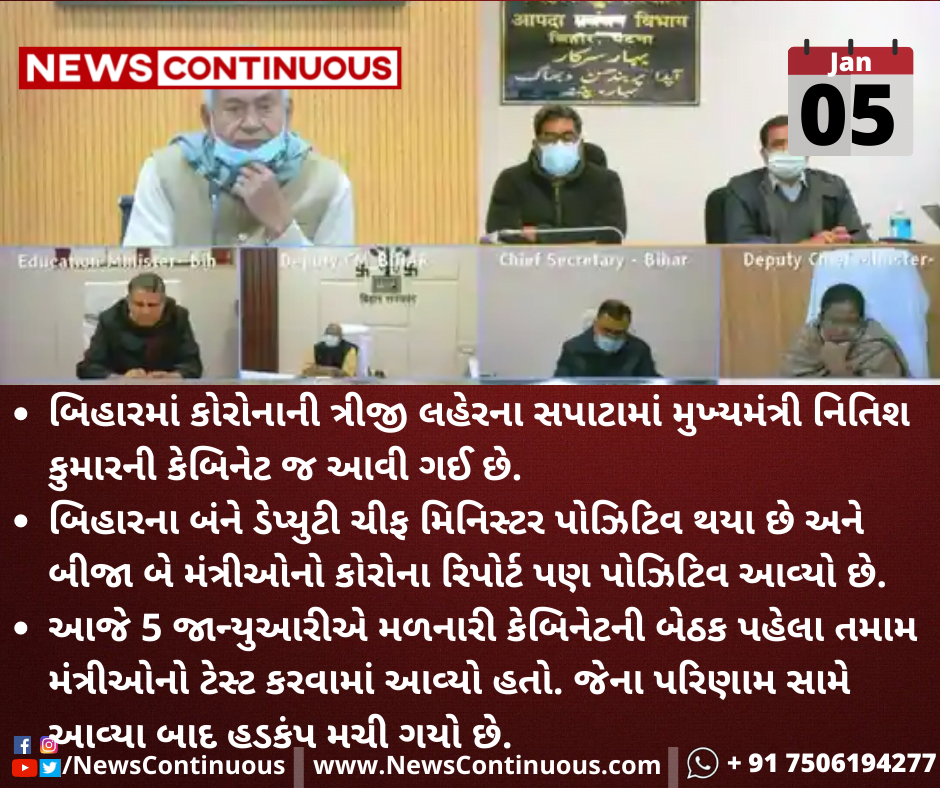 બિહારમાં કોરોનાની ત્રીજી લહેરના સપાટામાં મુખ્યમંત્રી નિતિશ કુમારની કેબિનેટ જ આવી ગઈ છે.