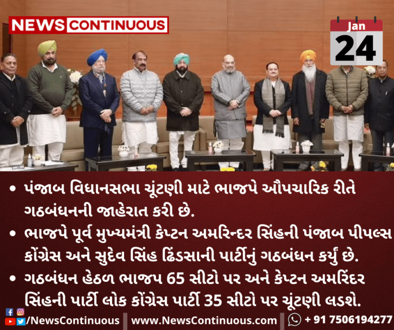 પંજાબ વિધાનસભા ચૂંટણી માટે ભાજપે ઔપચારિક રીતે ગઠબંધનની જાહેરાત કરી છે.
