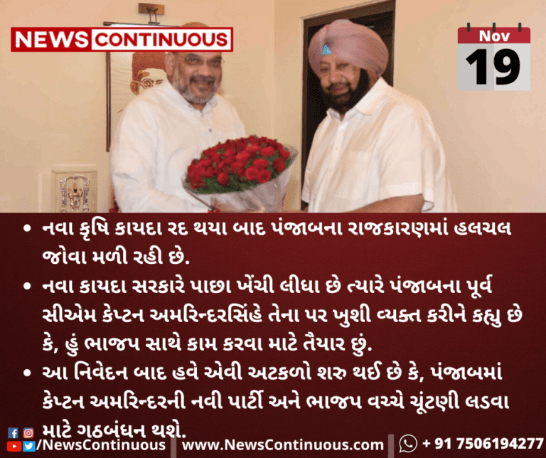આ નિવેદન બાદ હવે એવી અટકળો શરુ થઈ છે કે, પંજાબમાં કેપ્ટન અમરિન્દરની નવી પાર્ટી અને ભાજપ વચ્ચે ચૂંટણી લડવા માટે ગઠબંધન થશે.