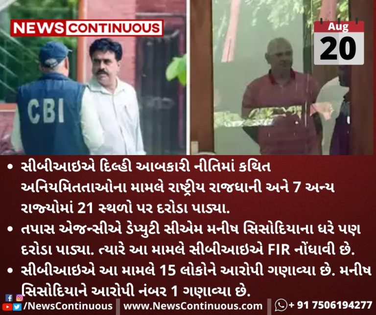 સીબીઆઇએ(CBI) દિલ્હી આબકારી નીતિમાં(Delhi Excise Policy) કથિત અનિયમિતતાઓના મામલે રાષ્ટ્રીય રાજધાની (National Capital) અને 7 અન્ય રાજ્યોમાં 21 સ્થળો પર દરોડા પાડ્યા.