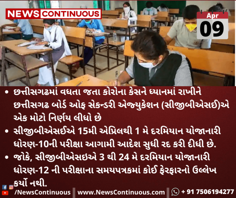 છત્તીસગઢમાં વધતા જતા કોરોના કેસને ધ્યાનમાં રાખીને છત્તીસગઢ બોર્ડ ઓફ સેકન્ડરી એજ્યુકેશન (સીજીબીએસઈ) એ એક મોટો નિર્ણય લીધો છે