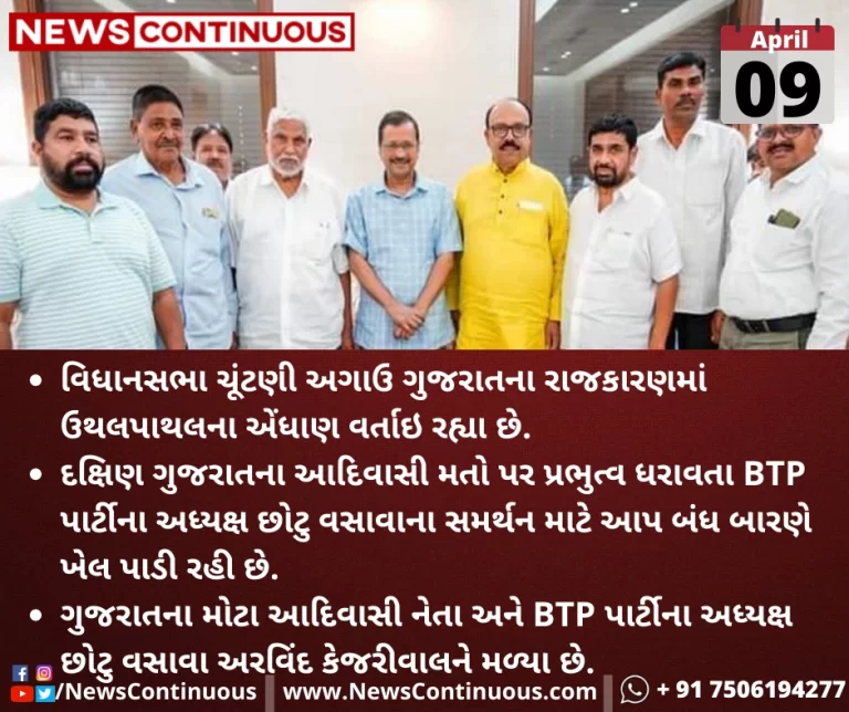 દક્ષિણ ગુજરાતના આદિવાસી મતો પર પ્રભુત્વ ધરાવતા BTP પાર્ટીના અધ્યક્ષ છોટુ વસાવાના સમર્થન માટે આપ બંધ બારણે ખેલ પાડી રહી છે.