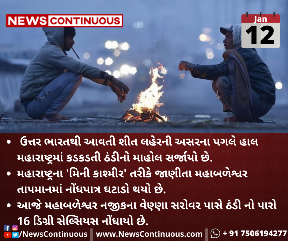 આજે મહાબળેશ્વર નજીકના વેણ્ણા સરોવર પાસે ઠંડી નો પારો 16 ડિગ્રી સેલ્સિયસ નોંધાયો છે.