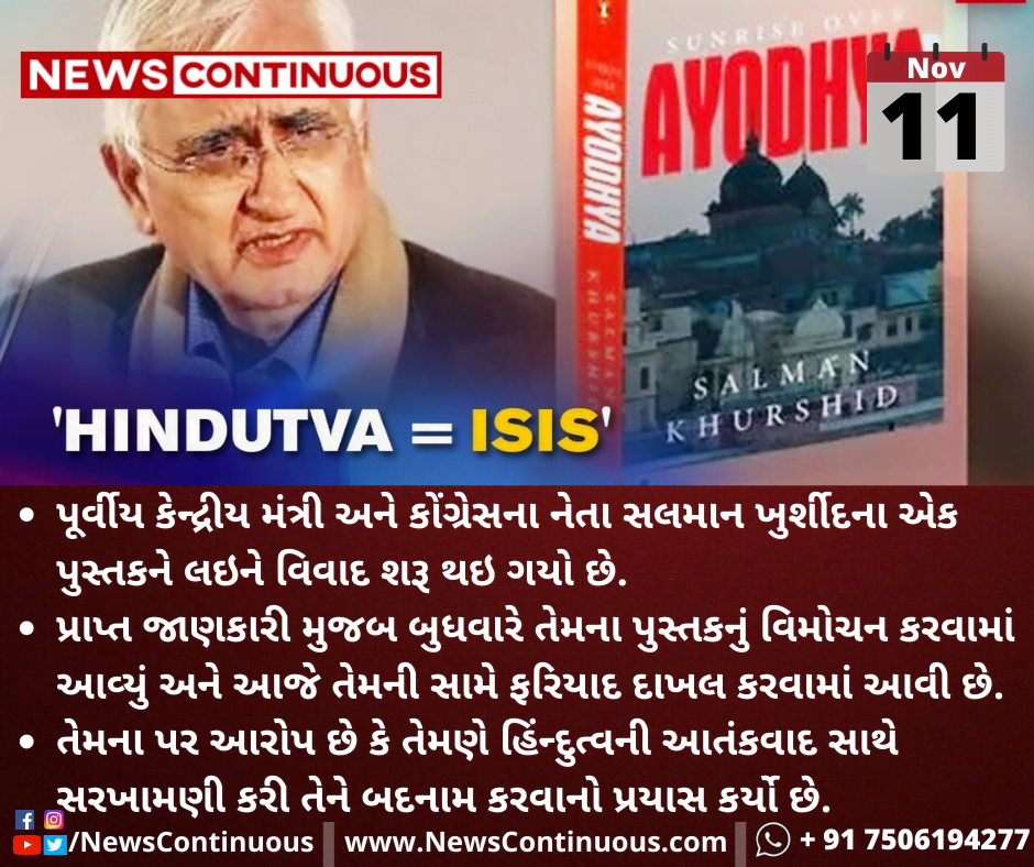 પૂર્વીય કેન્દ્રીય મંત્રી અને કોંગ્રેસના નેતા સલમાન ખુર્શીદના એક પુસ્તકને લઇને વિવાદ શરૂ થઇ ગયો છે