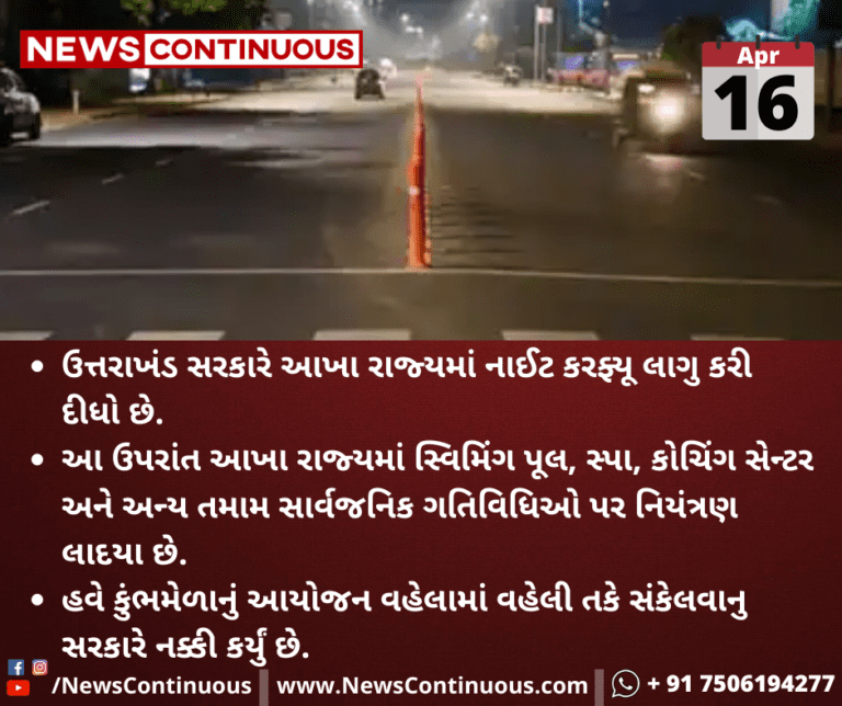 ઉત્તરાખંડ સરકારે આખા રાજ્યમાં નાઈટ કરફ્યૂ લાગુ કરી દીધો છે