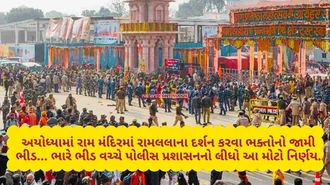 અયોધ્યા રામમંદિરના ભક્તો સરળતાથી દર્શન કરી શકે તે માટે વહીવટીતંત્ર દ્વારા વ્યવસ્થા કરવામાં આવી રહી છે. અભિષેક ( prana pratishtha ) બાદ પ્રથમ દિવસે એટલે કે સોમવારે ભારે ભીડને કારણે વ્યવસ્થાઓ ખોરવાઈ ગઈ હતી.