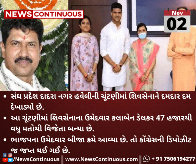 ઉલ્લેખનીય છે કે દાદરા નગર હવેલીમાં અપક્ષ સાંસદ મોહન ડેલકરના નિધન બાદ લોકસભાબેઠક ખાલી પડી હતી.