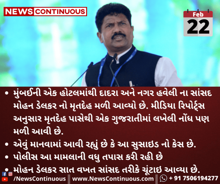 મુંબઈની એક હોટલમાંથી દાદરા અને નગર હવેલી ના સાંસદ મોહન ડેલકર નો મૃતદેહ મળી આવ્યો છે.