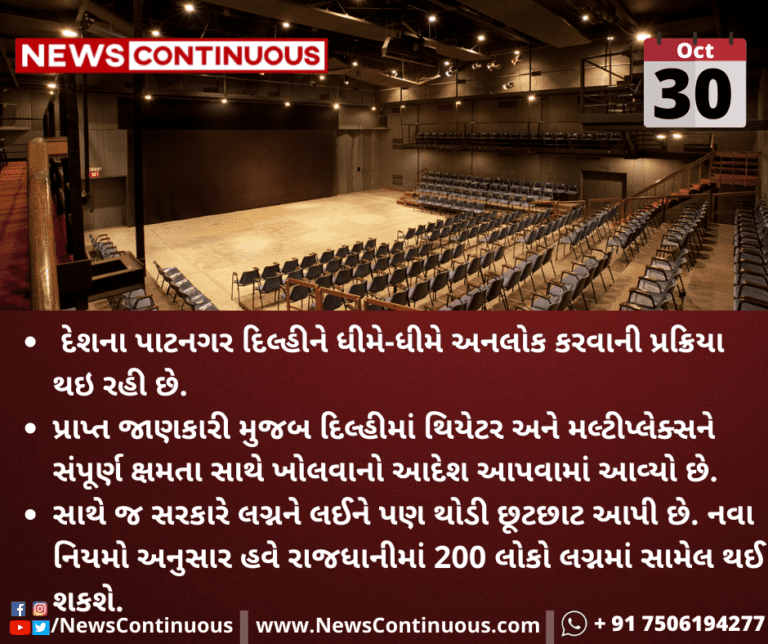 પ્રાપ્ત જાણકારી મુજબ દિલ્હીમાં થિયેટર અને મલ્ટીપ્લેક્સને સંપૂર્ણ ક્ષમતા સાથે ખોલવાનો આદેશ આપવામાં આવ્યો છે.