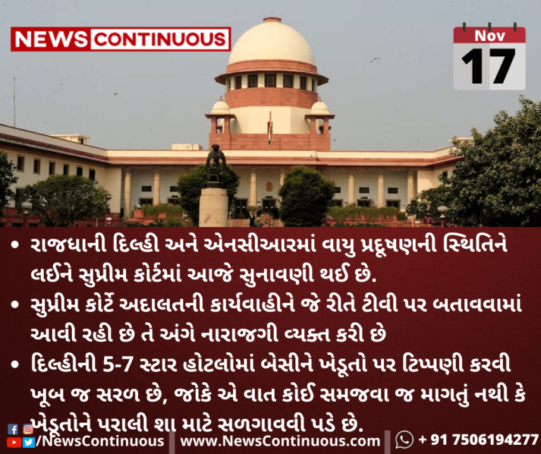 રાજધાની દિલ્હી અને એનસીઆરમાં વાયુ પ્રદૂષણની સ્થિતિને લઈને સુપ્રીમ કોર્ટમાં આજે સુનાવણી થઈ છે.