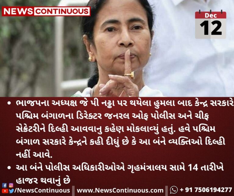 ભાજપના અધ્યક્ષ જે પી નઢ્ઢા પર થયેલા હુમલા બાદ કેન્દ્ર સરકારે પશ્ચિમ બંગાળના ડિરેક્ટર જનરલ ઓફ પોલીસ અને ચીફ સેક્રેટરીને દિલ્હી આવવાનુ સમન્સ મોકલાવ્યું હતું. હવે પશ્ચિમ બંગાળ સરકારે કેન્દ્રને કહી દીધું છે કે આ બંને વ્યક્તિઓ દિલ્હી નહીં આવે.