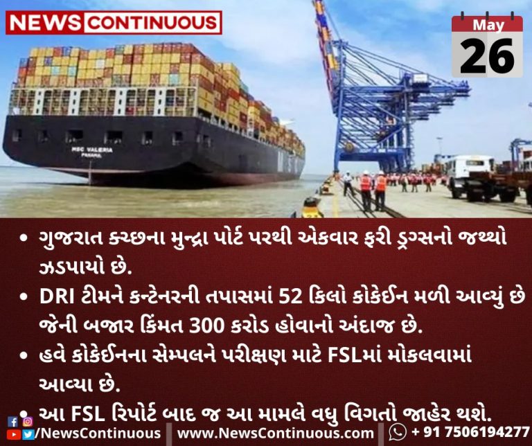 DRI ટીમને કન્ટેનરની તપાસમાં 52 કિલો કોકેઈન(Cocaine) મળી આવ્યું છે જેની બજાર કિંમત(Market price) 300 કરોડ હોવાનો અંદાજ છે.