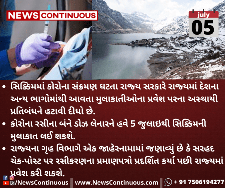 કોરોના રસીના બંને ડોઝ લેનારને હવે 5 જુલાઇથી સિક્કિમની મુલાકાત લઈ શકશે.
