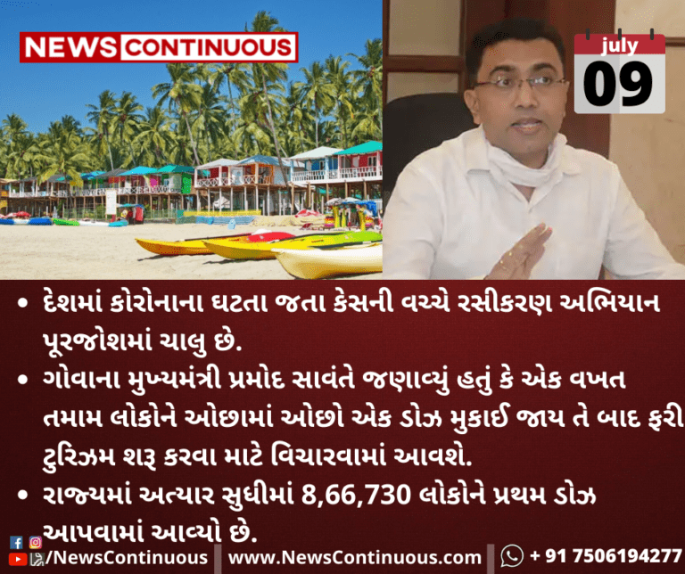ગોવાના મુખ્યમંત્રી પ્રમોદ સાવંતે જણાવ્યું હતું કે એક વખત તમામ લોકોને ઓછામાં ઓછો એક ડોઝ મુકાઈ જાય તે બાદ ફરી ટુરિઝમ શરૂ કરવા માટે વિચારવામાં આવશે.
