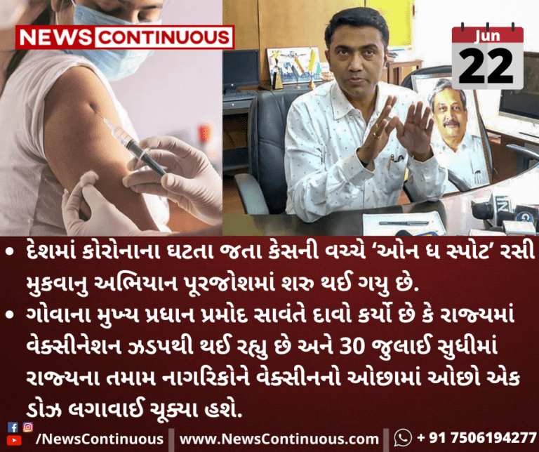 ઉલ્લેખનીય છે કે ગોવાના 60 ટકા લોકોને વેકસીનનો એક ડોઝ અપાઈ ચુકયો છે. રોજ 20000 લોકોને વેક્સીન મુકાઈ રહી છે.