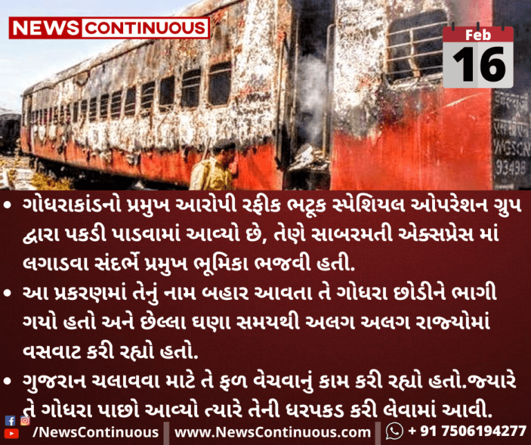 ગોધરાકાંડનો પ્રમુખ આરોપી રફીક ભટૂક સ્પેશિયલ ઓપરેશન ગ્રુપ દ્વારા પકડી પાડવામાં આવ્યો છે