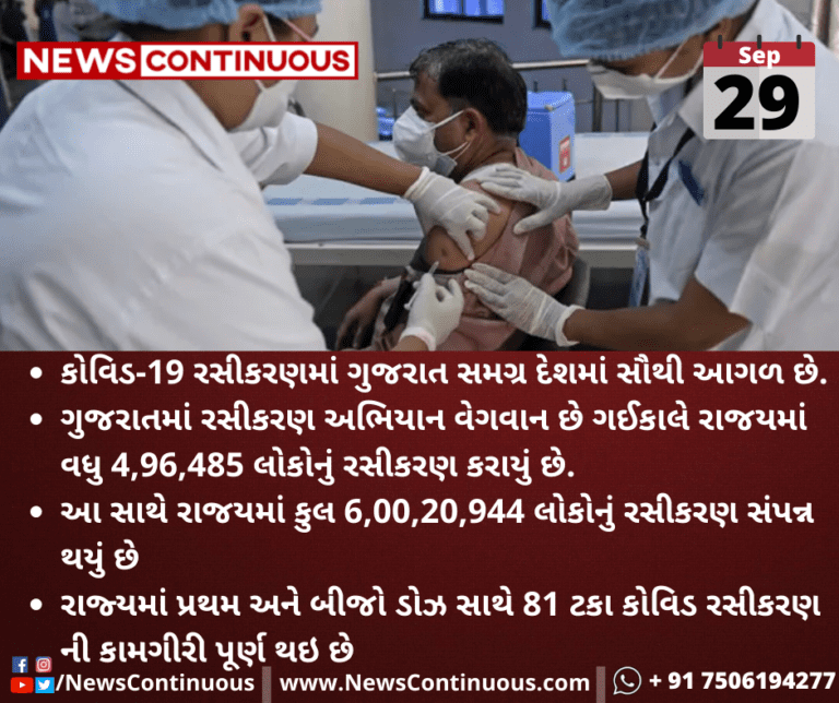 આ સાથે રાજયમાં કુલ 6,00,20,944 લોકોનું રસીકરણ સંપન્ન થયું છે