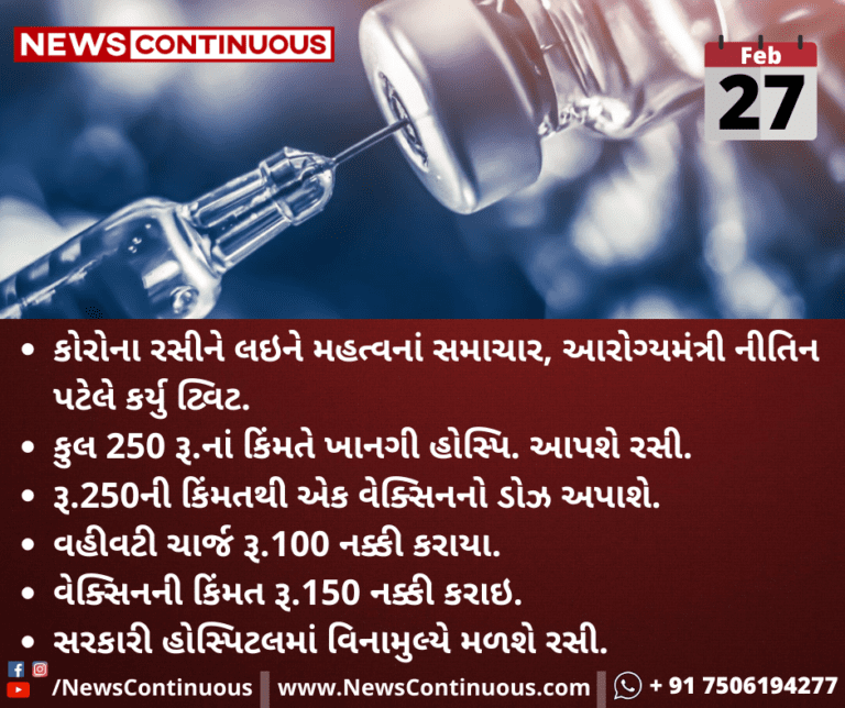 કોરોના રસીને લઇને મહત્વનાં સમાચાર, આરોગ્યમંત્રી નીતિન પટેલે કર્યુ ટ્વિટ.