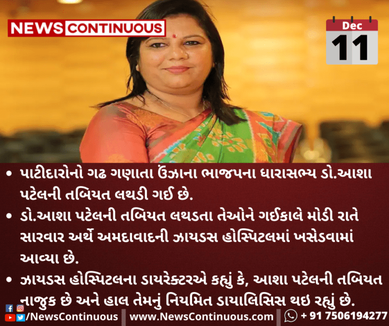 ઝાયડસ હોસ્પિટલના ડાયરેક્ટરએ વિગત જણાવતા કહ્યું કે, આશા પટેલની તબિયત નાજુક છે અને હાલ તેમનું નિયમિત ડાયાલિસિસ થઇ રહ્યું છે.