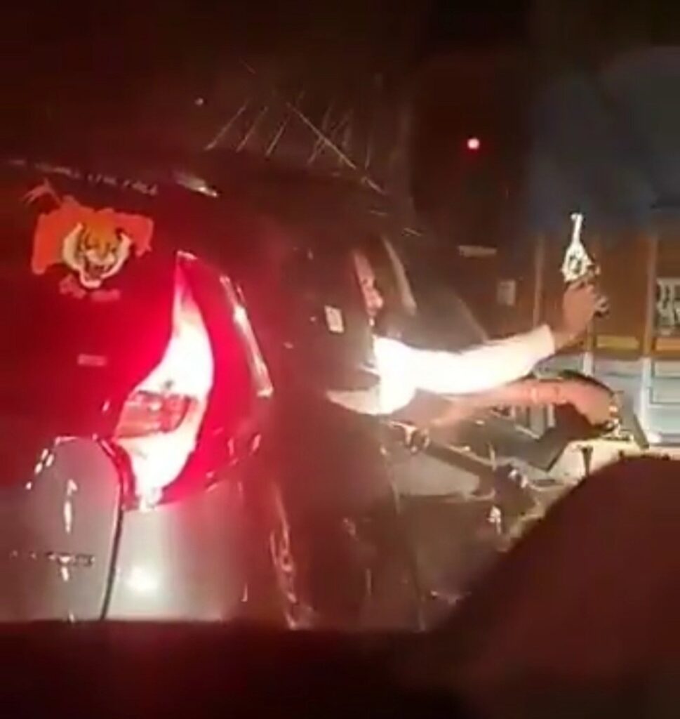 આ ગાડી ની પાછળ શિવસેનાનું સ્ટીકર લાગેલું છે. જેને કારણે શિવસેના ની છબી ખરડાઇ રહી છે.