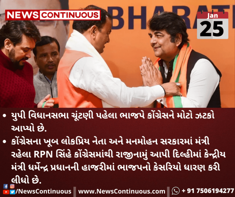 કોંગ્રેસના ખૂબ લોકપ્રિય નેતા અને મનમોહન સરકારમાં મંત્રી રહેલા RPN સિંહે કોંગ્રેસમાંથી રાજીનામું આપી દિલ્હીમાં કેન્દ્રીય મંત્રી ધર્મેન્દ્ર પ્રધાનની હાજરીમાં ભાજપનો કેસરિયો ધારણ કરી લીધો છે.