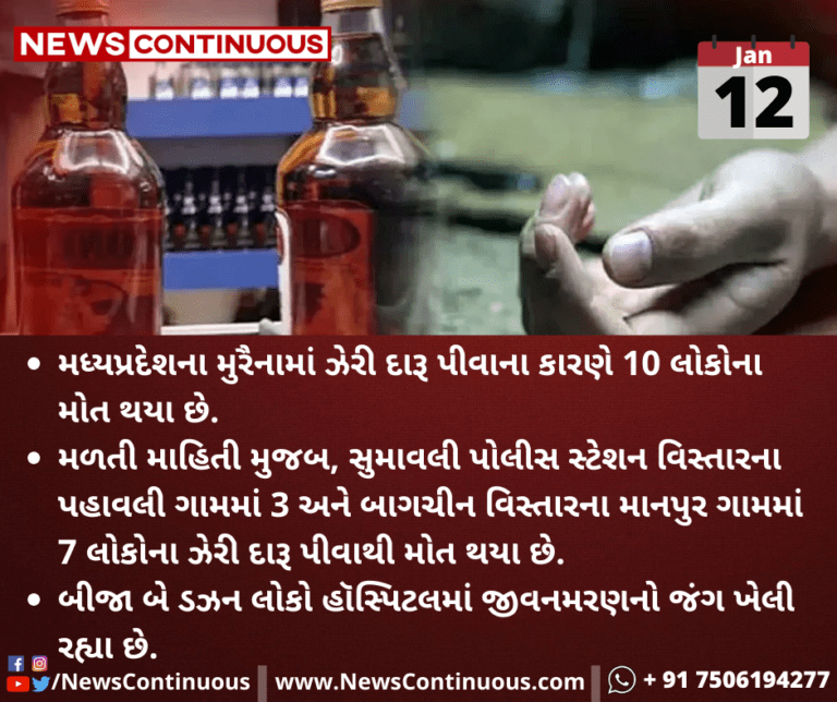 પોલીસ મુજબ, સુમાવલી પોલીસ સ્ટેશન વિસ્તારના પહાવલી ગામમાં 3 અને બાગચીન વિસ્તારના માનપુર ગામમાં 7 લોકોના ઝેરી દારૂ પીવાથી મોત થયા છે.