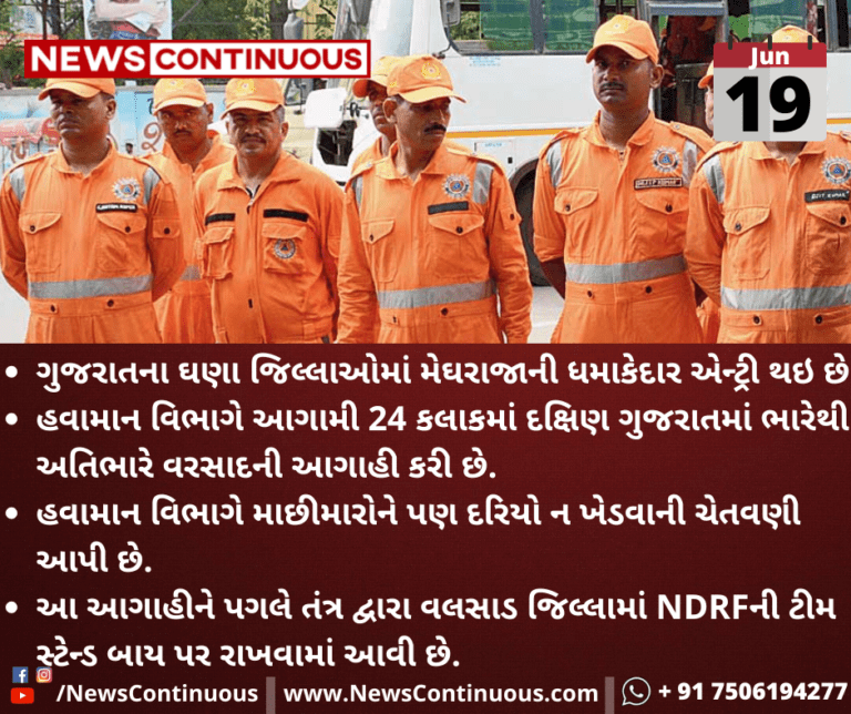 આ આગાહીને પગલે તંત્ર દ્વારા વલસાડ જિલ્લામાં NDRFની ટીમ સ્ટેન્ડ બાય પર રાખવામાં આવી છે.