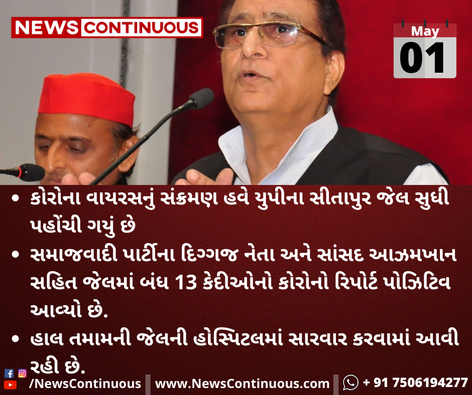 સમાજવાદી પાર્ટીના દિગ્ગજ નેતા અને સાંસદ આઝમખાન સહિત જેલમાં બંધ 13 કેદીઓનો કોરોનો રિપોર્ટ પોઝિટિવ આવ્યો છે.