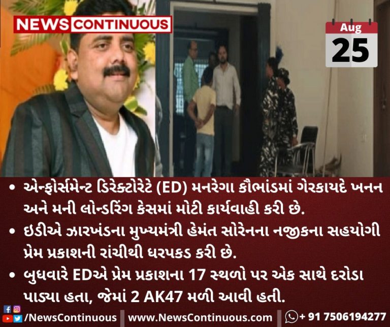ઇડીએ ઝારખંડના(Jharkhand) મુખ્યમંત્રી હેમંત સોરેનના(Hemant Soren) નજીકના સહયોગી પ્રેમ પ્રકાશની(Prem Prakash) રાંચીથી(Ranchi) ધરપકડ કરી છે.