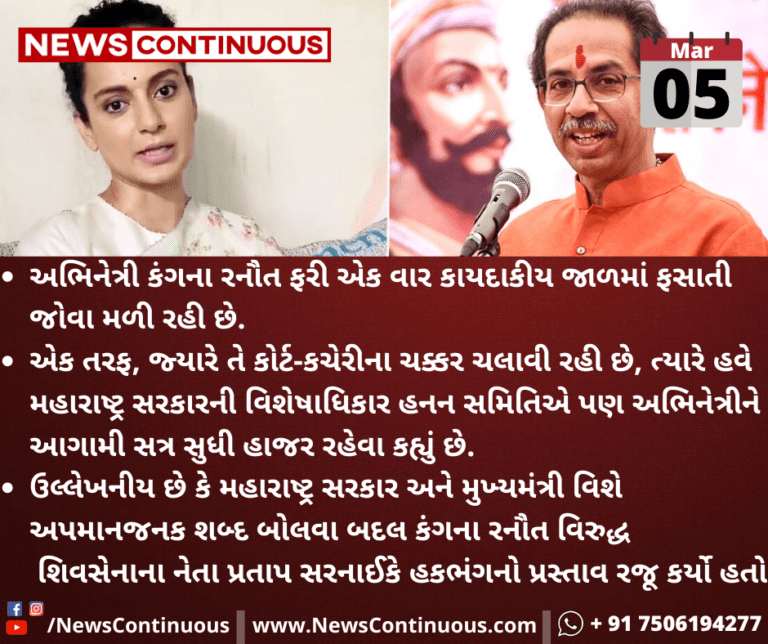 એક તરફ, જ્યારે તે કોર્ટ-કચેરીના ચક્કર ચલાવી રહી છે, ત્યારે હવે મહારાષ્ટ્ર સરકારની વિશેષાધિકાર હનન સમિતિએ પણ અભિનેત્રીને આગામી સત્ર સુધી હાજર રહેવા કહ્યું છે.
