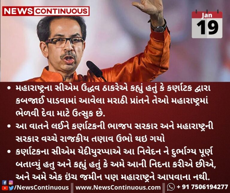 - મહારાષ્ટ્રના સીએમ ઉદ્ધવ ઠાકરેએ કહ્યું હતું કે કર્ણાટક દ્વારા કબજાઈ પાડવામાં આવેલા મરાઠી પ્રાંતને તેઓ મહારાષ્ટ્રમાં ભેળવી દેવા માટે ઉત્સુક છે.