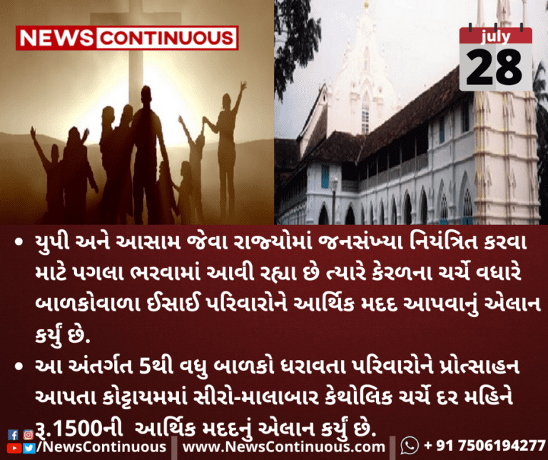 યુપી અને આસામ જેવા રાજ્યોમાં જનસંખ્યા નિયંત્રિત કરવા માટે પગલા ભરવામાં આવી રહ્યા છે ત્યારે કેરળના ચર્ચે વધારે બાળકો વાળા ઈસાઈ પરિવારોને આર્થિક મદદ આપવાનું એલાન કર્યું છે.