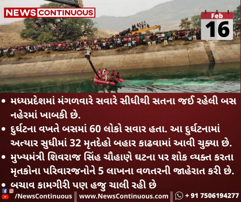 મધ્યપ્રદેશમાં મંગળવારે સવારે સીધીથી સતના જઈ રહેલી બસ નહેરમાં ખાબકી છે.