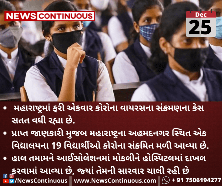 પ્રાપ્ત જાણકારી મુજબ મહારાષ્ટ્રના અહમદનગર સ્થિત એક વિદ્યાલયના 19 વિદ્યાર્થીઓ કોરોના સંક્રમિત મળી આવ્યા છે.