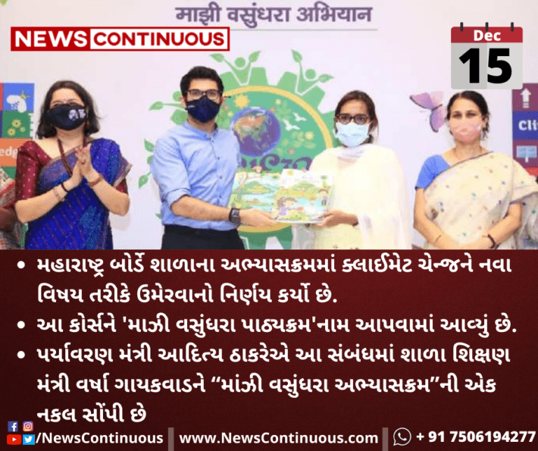 મહારાષ્ટ્ર બોર્ડે શાળાના અભ્યાસક્રમમાં ક્લાઈમેટ ચેન્જને નવા વિષય તરીકે ઉમેરવાનો નિર્ણય કર્યો છે.