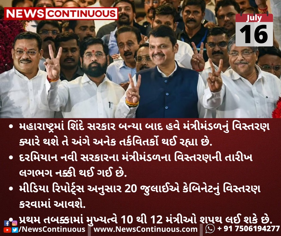 મીડિયા રિપોર્ટ્સ અનુસાર 20 જુલાઈએ કેબિનેટનું વિસ્તરણ કરવામાં આવશે.