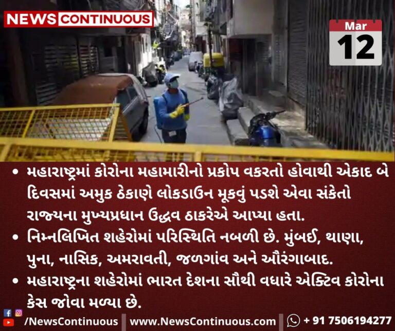 મહારાષ્ટ્રના શહેરોમાં ભારત દેશના સૌથી વધારે એક્ટિવ કોરોના કેસ જોવા મળ્યા છે.