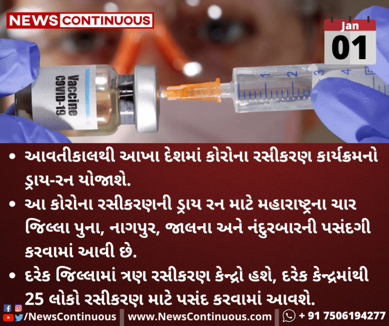 - આવતીકાલથી આખા દેશમાં કોરોના રસીકરણ કાર્યક્રમનો ડ્રાય-રન યોજાશે.