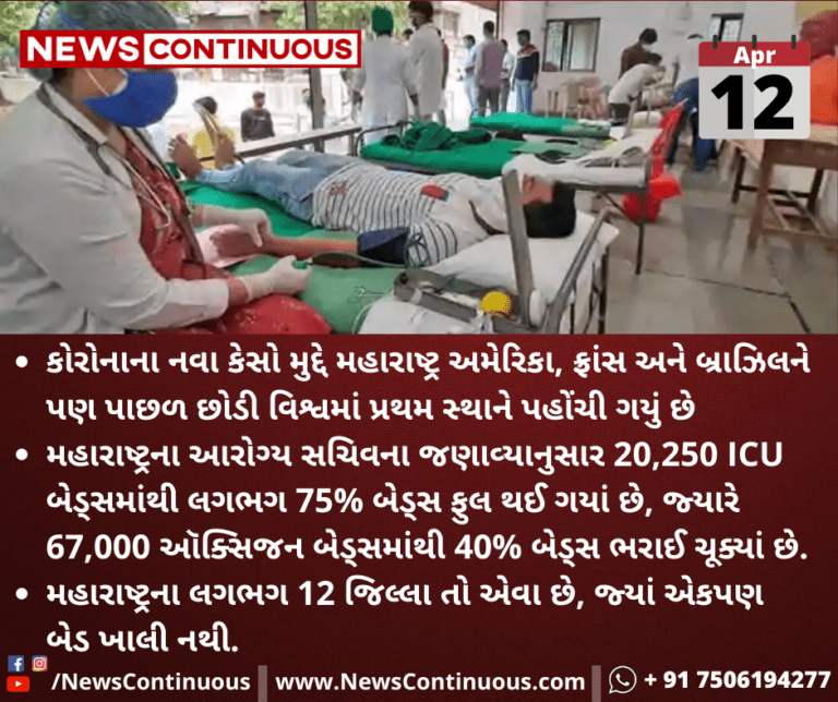 કોરોનાના નવા કેસો મુદ્દે મહારાષ્ટ્ર અમેરિકા, ફ્રાંસ અને બ્રાઝિલને પણ પાછળ છોડી વિશ્વમાં પ્રથમ સ્થાને પહોંચી ગયું છે