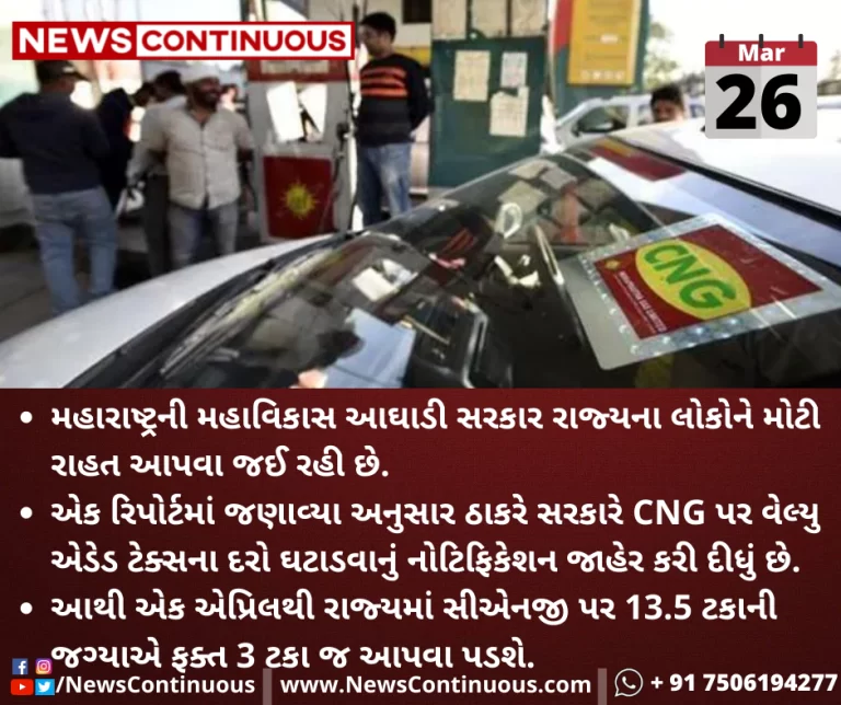 એક રિપોર્ટમાં જણાવ્યા અનુસાર ઠાકરે સરકારે CNG પર વેલ્યુ એડેડ ટેક્સના દરો ઘટાડવાનું નોટિફિકેશન જાહેર કરી દીધું છે.
