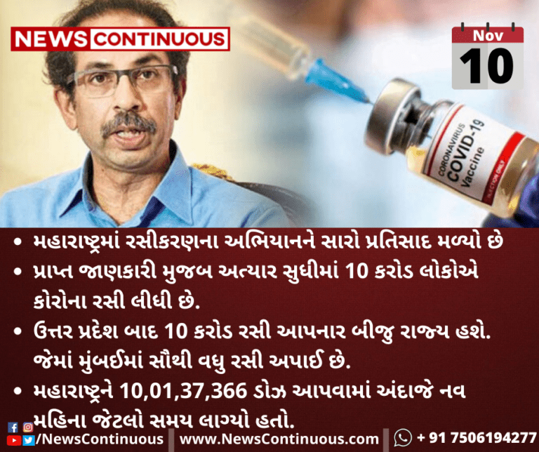ઉત્તર પ્રદેશ બાદ 10 કરોડ રસી આપનાર બીજુ રાજ્ય હશે. જેમાં મુંબઈમાં સૌથી વધુ રસી અપાઈ છે.